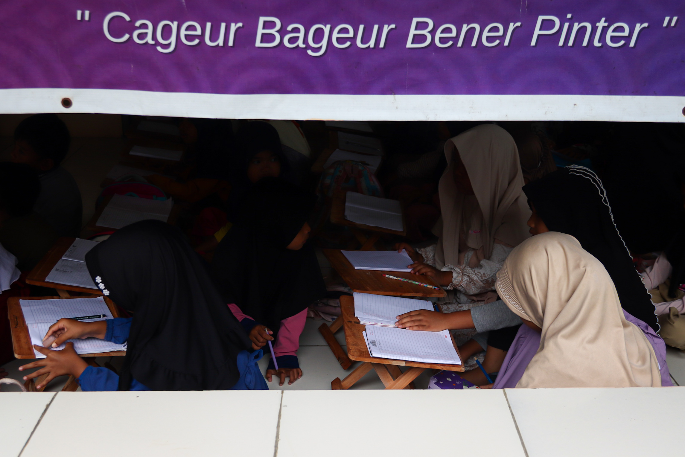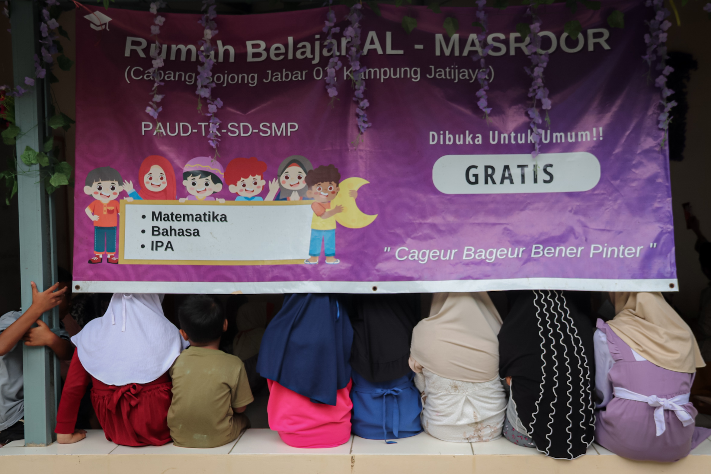 Foto: “Cageur, Bageur, Pinter”, jargon Rumah Belajar al-Masroor yang berarti “Sehat, Baik, Cerdas”.