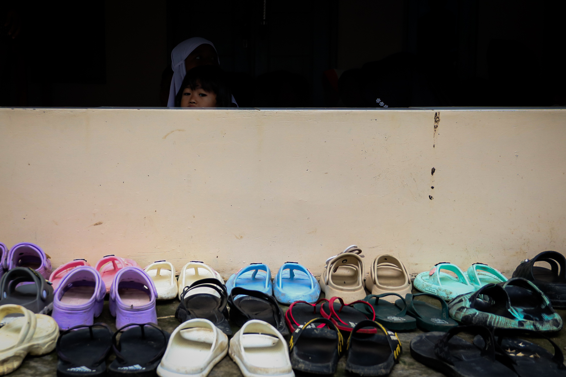 Foto: Sandal anak-anak berjejer rapi di depan Rumah Belajar al-Masroor, Kabupaten Bekasi, Sabtu, (3/1).