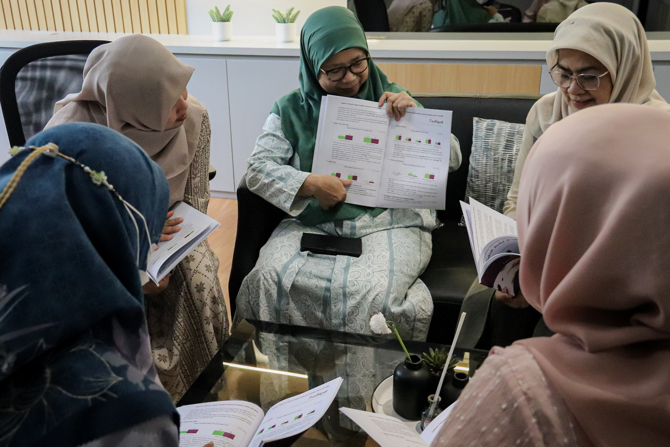 Foto: Sadr Lilis Aisyah Bakrie, berdiskusi bersama sejumlah di anggota Lajnah Imaillah. Ahmadiyah berupaya mendirikan ratusan rumah belajar gratis di sejumlah wilayah Indonesia, Kabupaten Bogor, Minggu, (4/1).