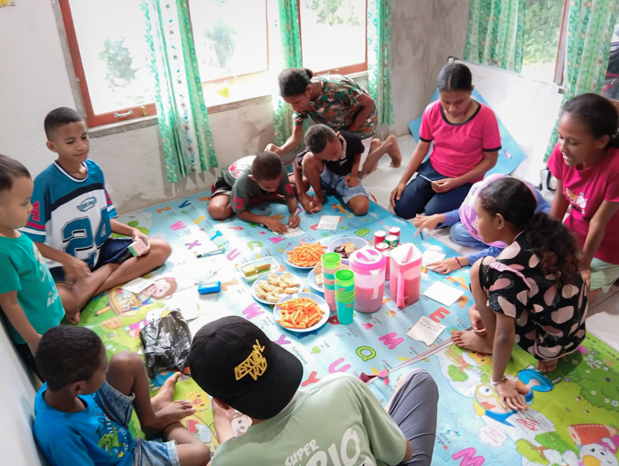 Foto: Sejumlah anak menikmati camilan selepas belajar di Rumah Belajar SatuTiBa, Fak-fak, Papua Barat. (Doc: Pribadi)